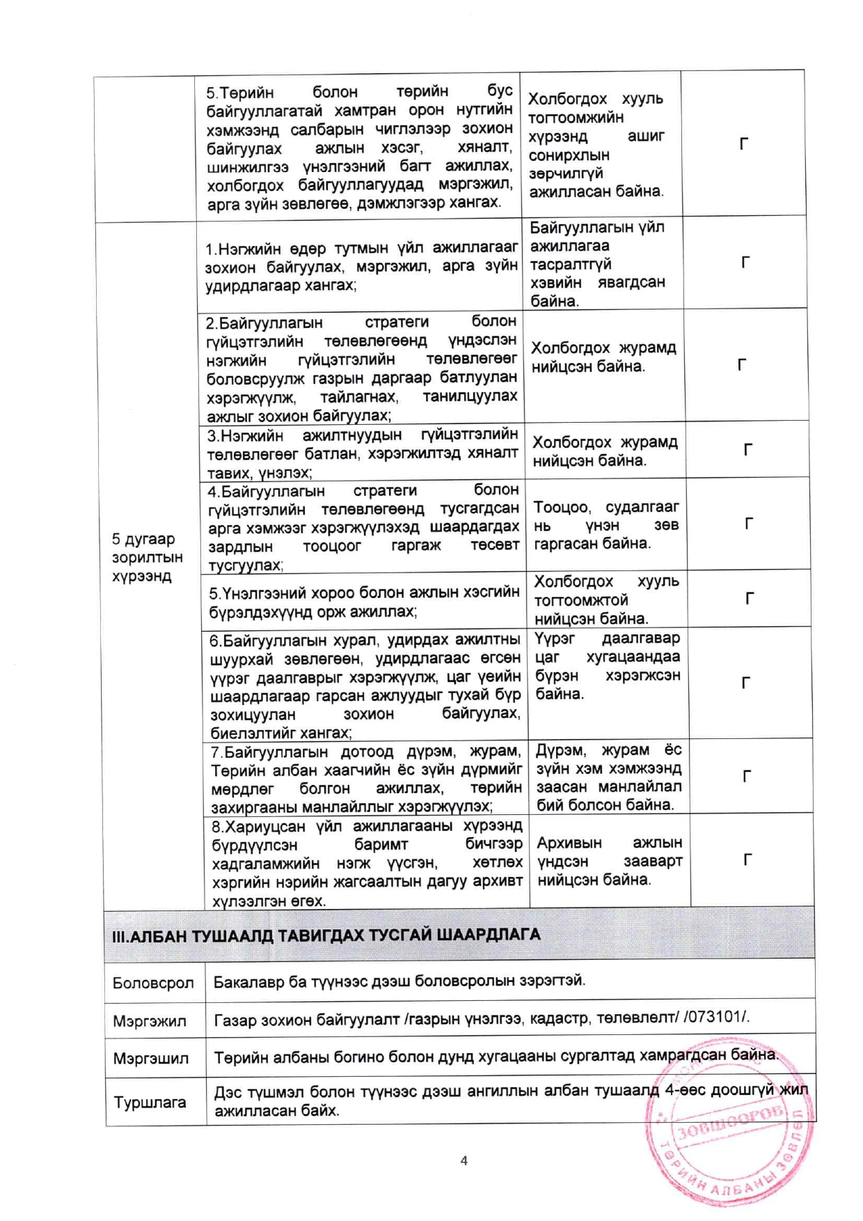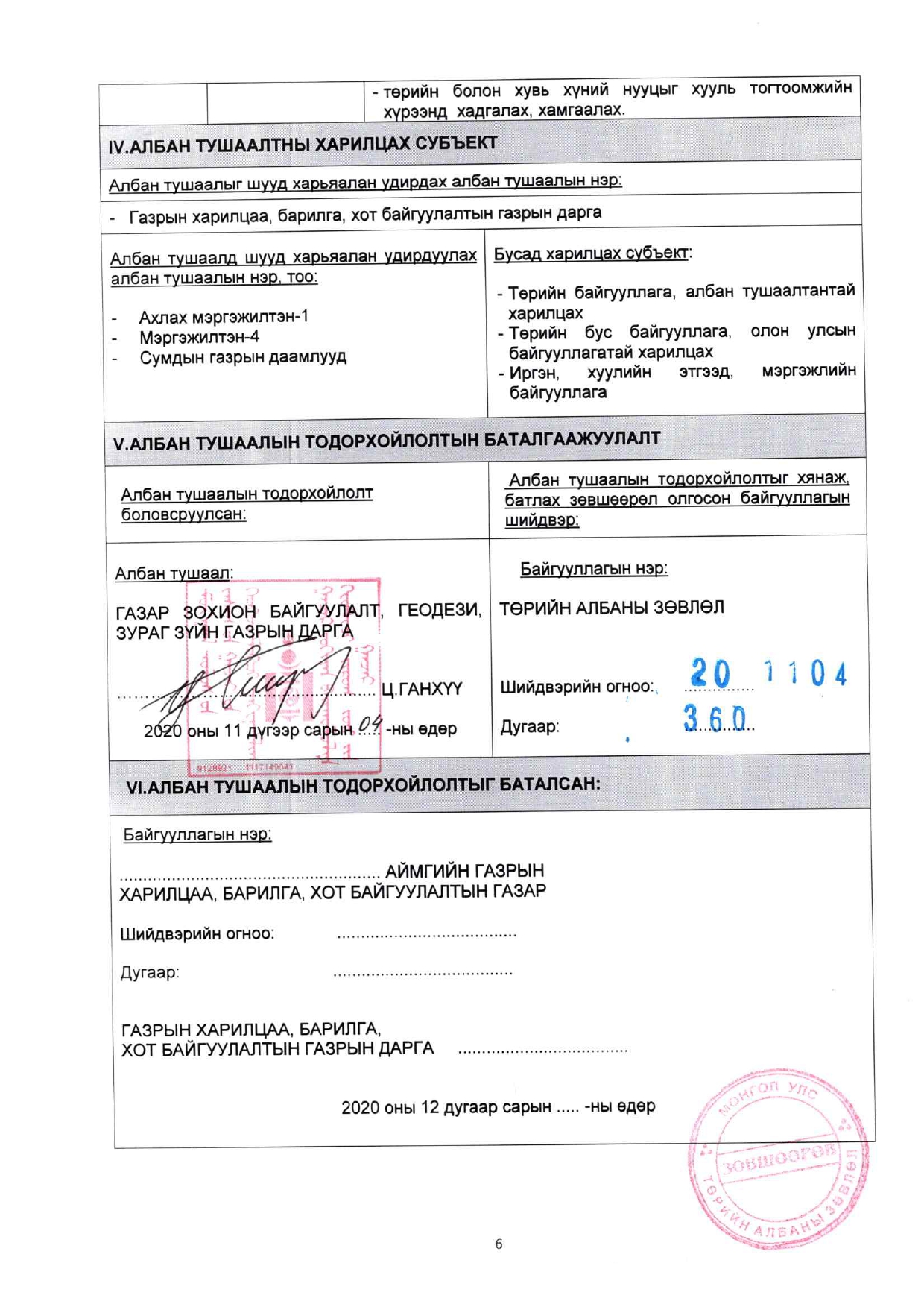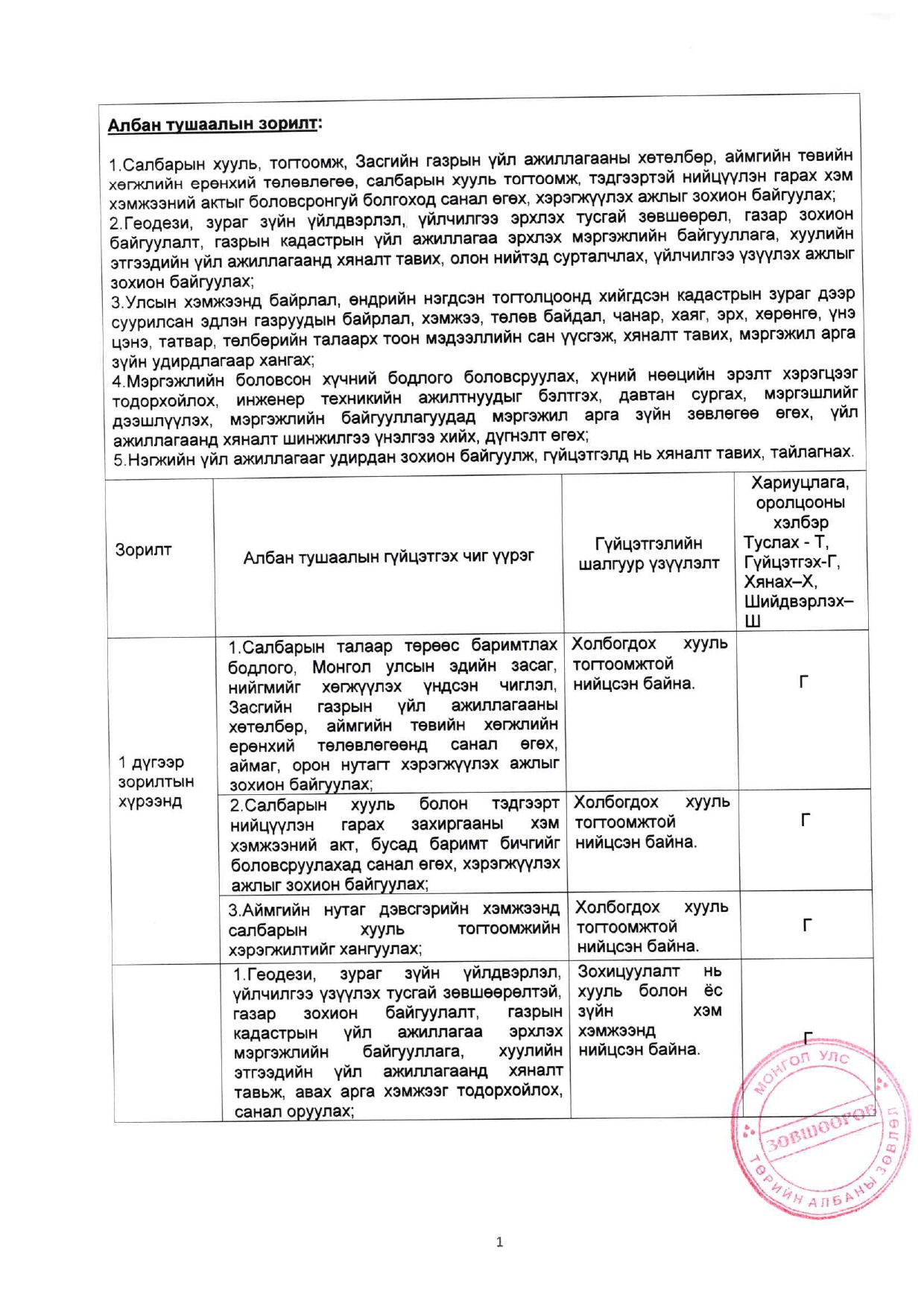 ГАЗРЫН ДАРГЫН ТУШААЛ