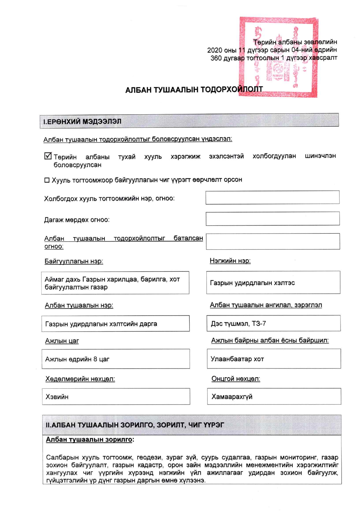 АЛБАН ТУШААЛЫН ТОДОРХОЙЛОЛТ