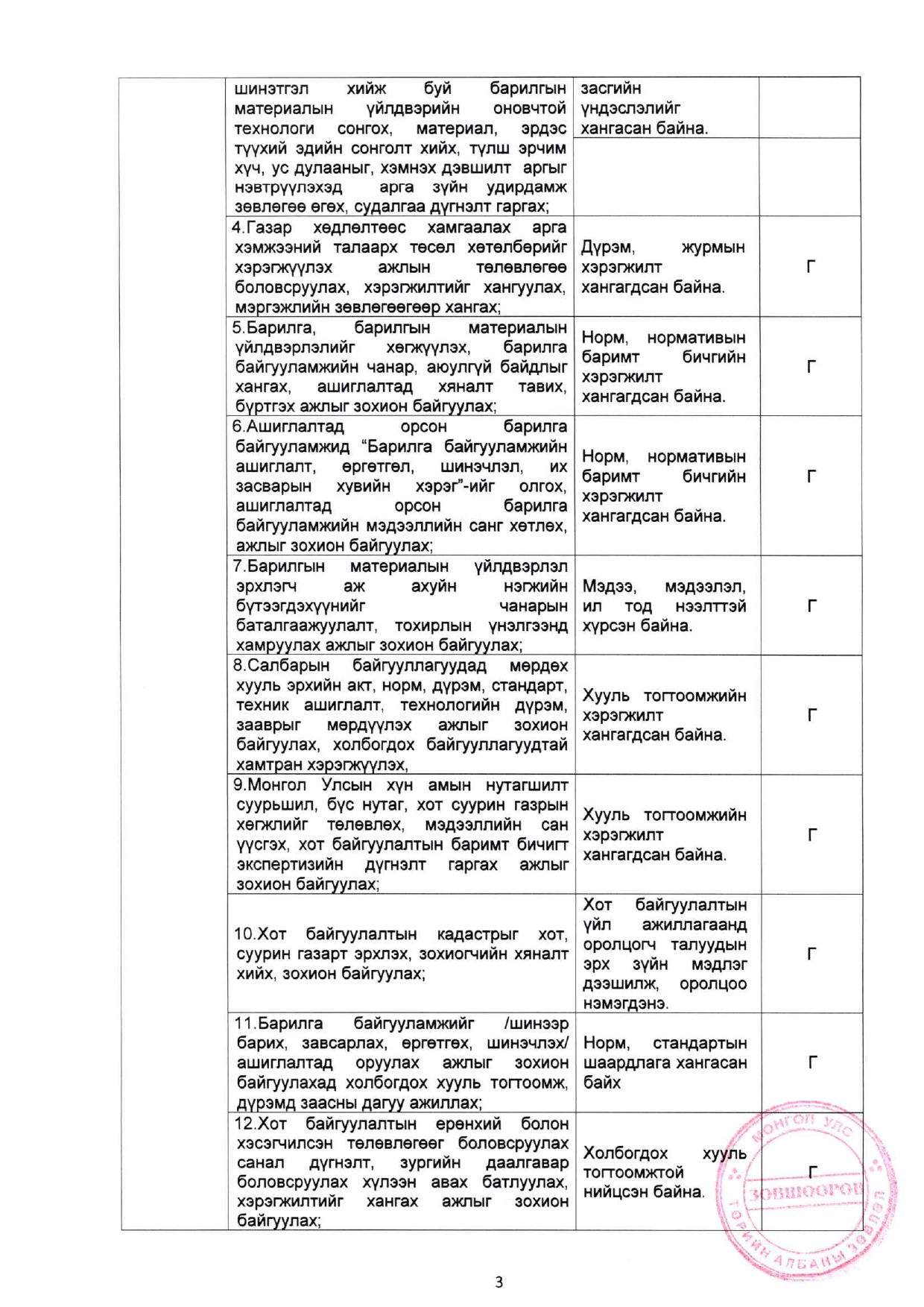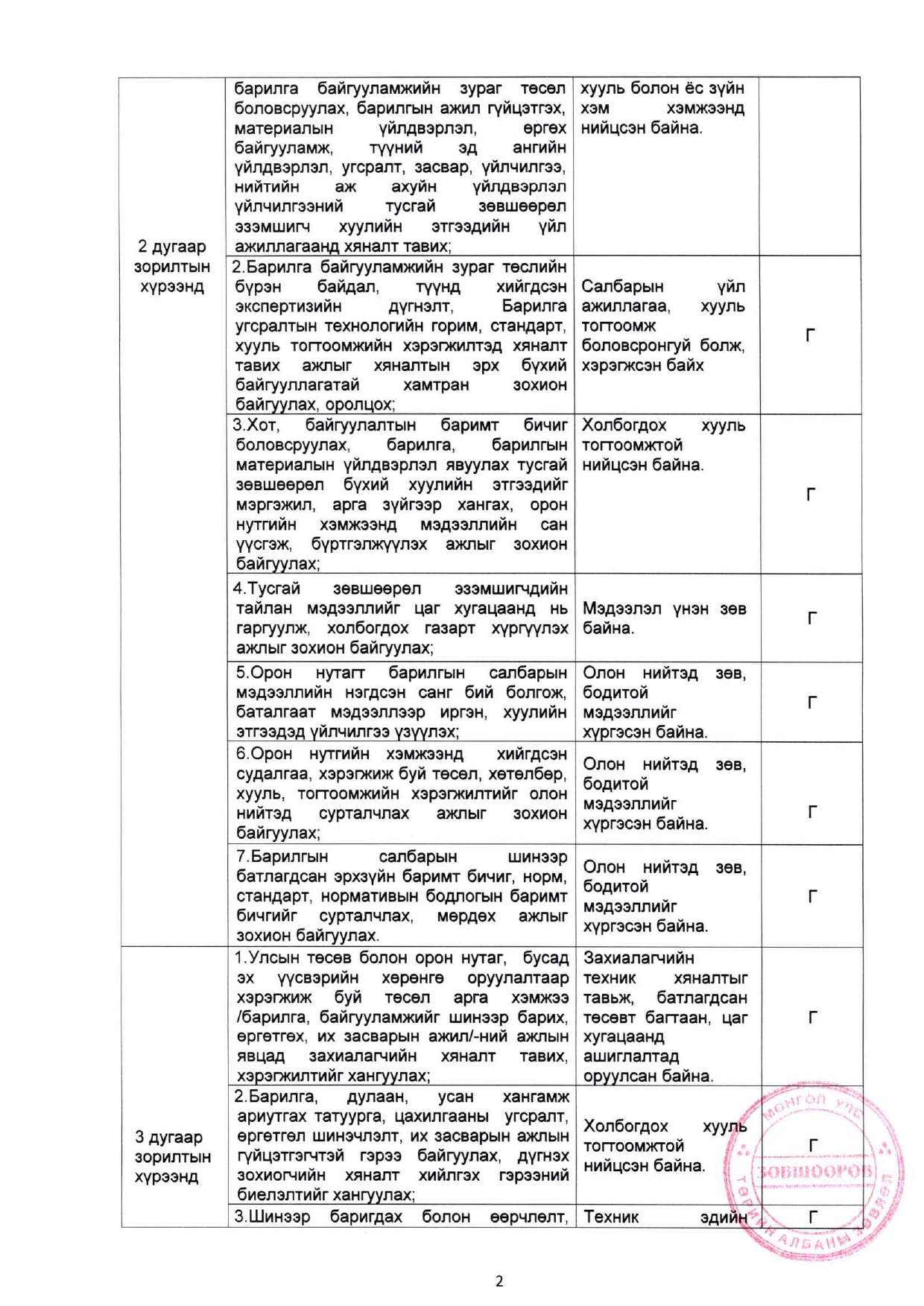 БАРИЛГА БАЙГУУЛАМЖИЙГ АШИГЛАЛТАД ОРУУЛАХЫГ ЗӨВШӨӨРСӨН УЛСЫН КОМИССЫН ДҮГНЭЛТ