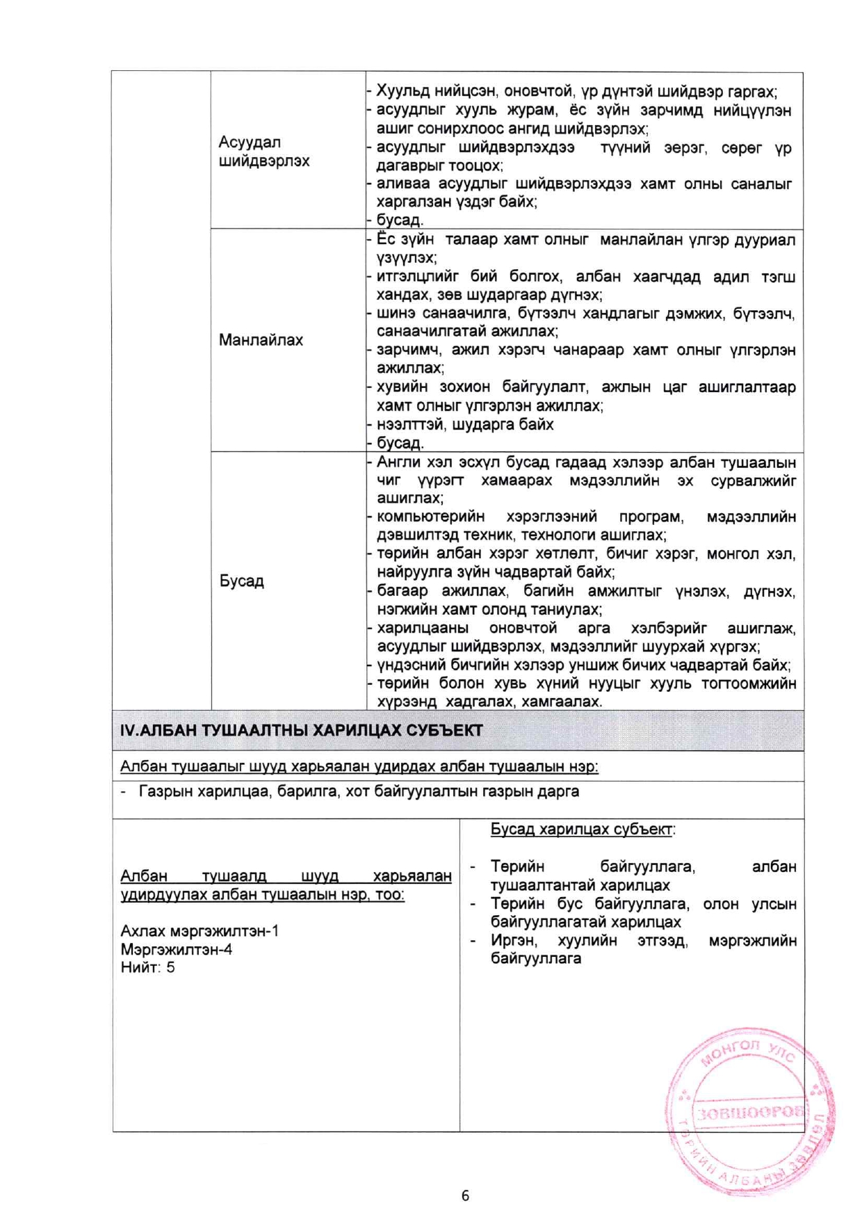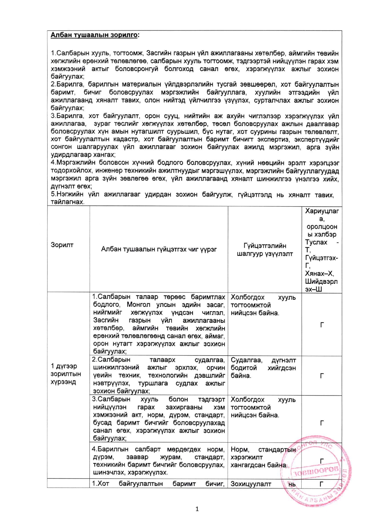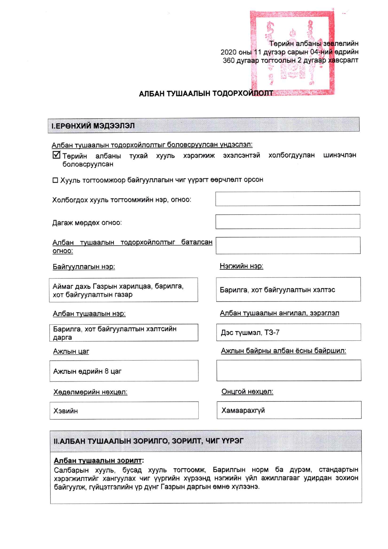 АЛБАН ТУШААЛЫН ТОДОРХОЙЛОЛТ