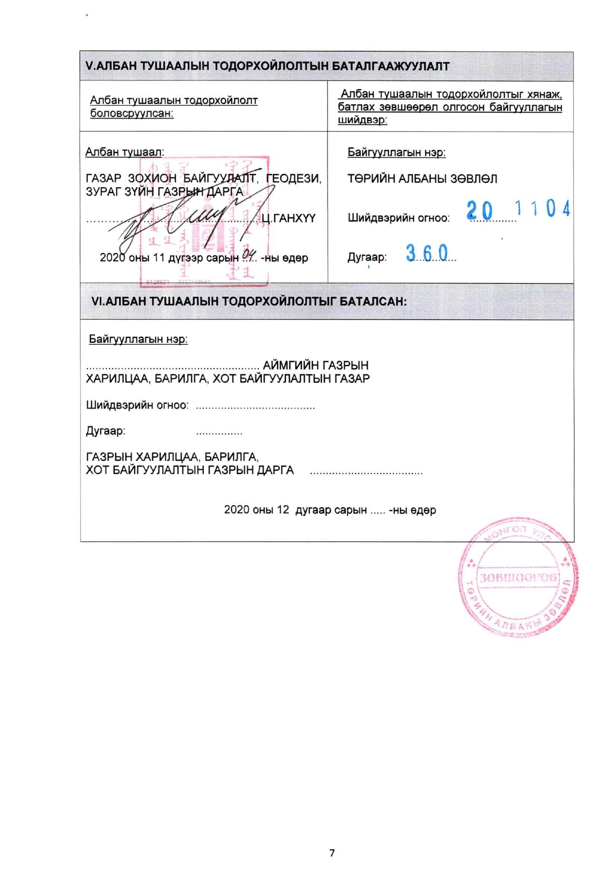 ГАЗРЫН ДАРГЫН ТУШААЛ