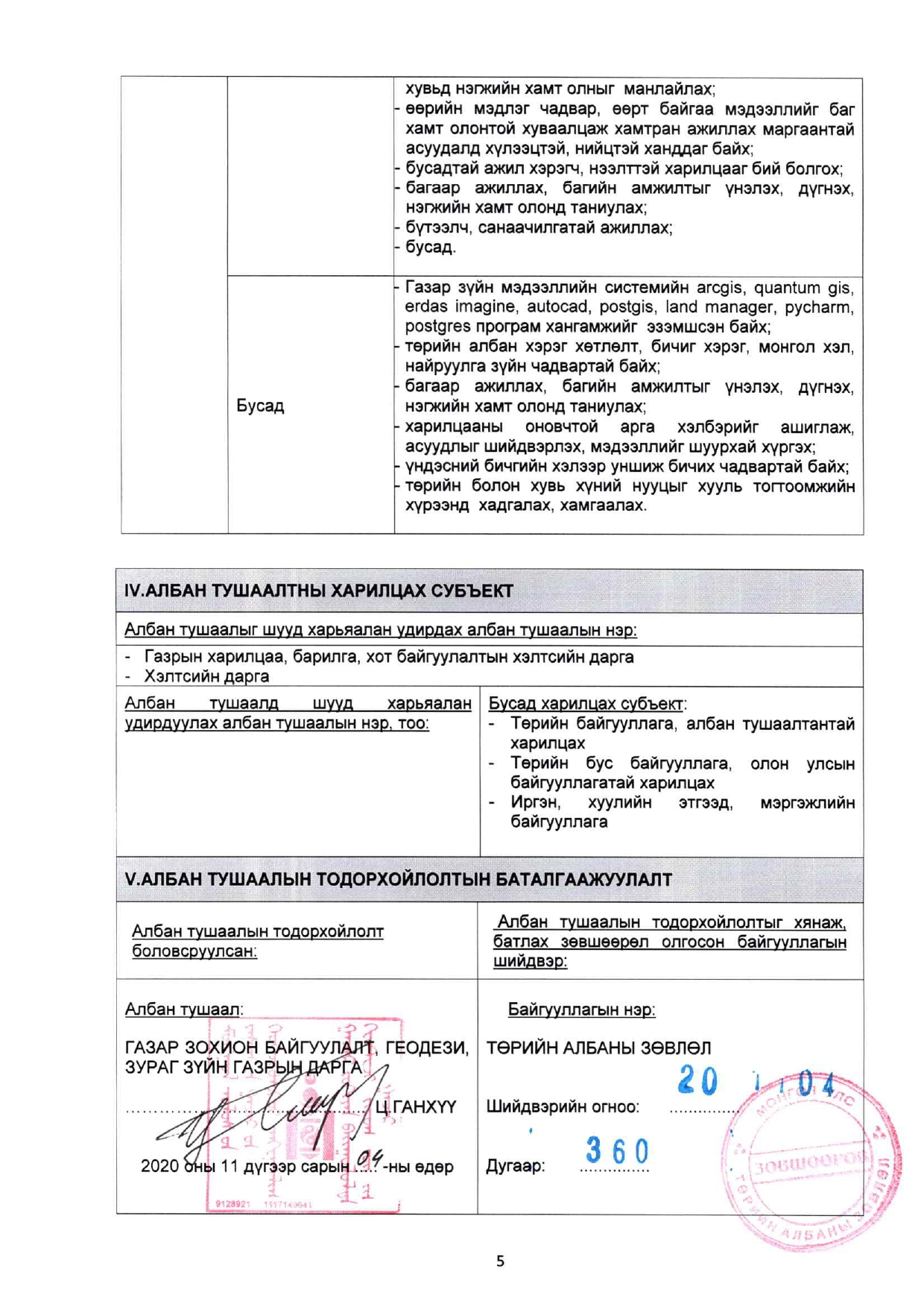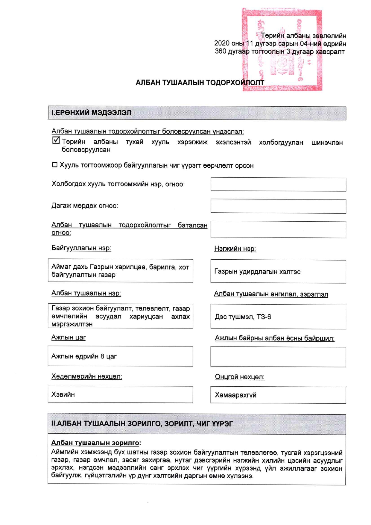 АЛБАН ТУШААЛЫН ТОДОРХОЙЛОЛТ