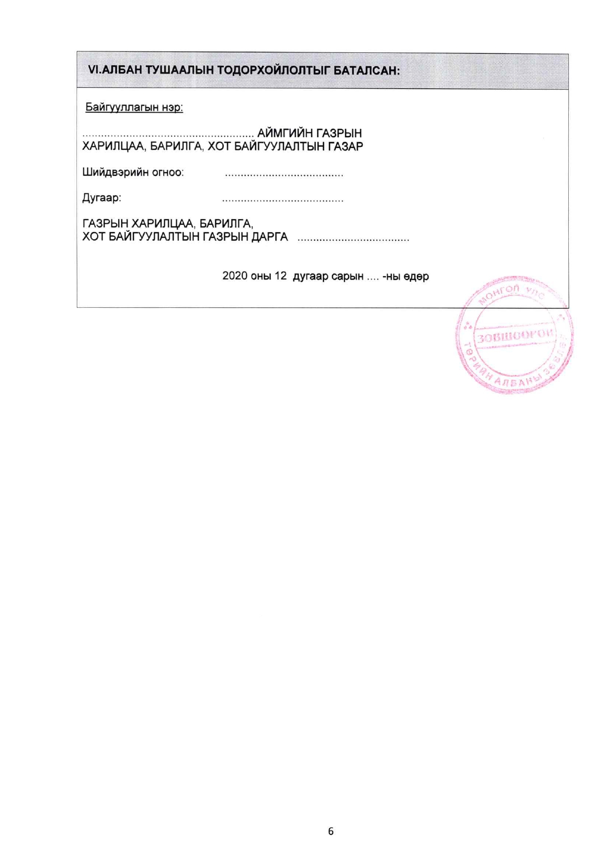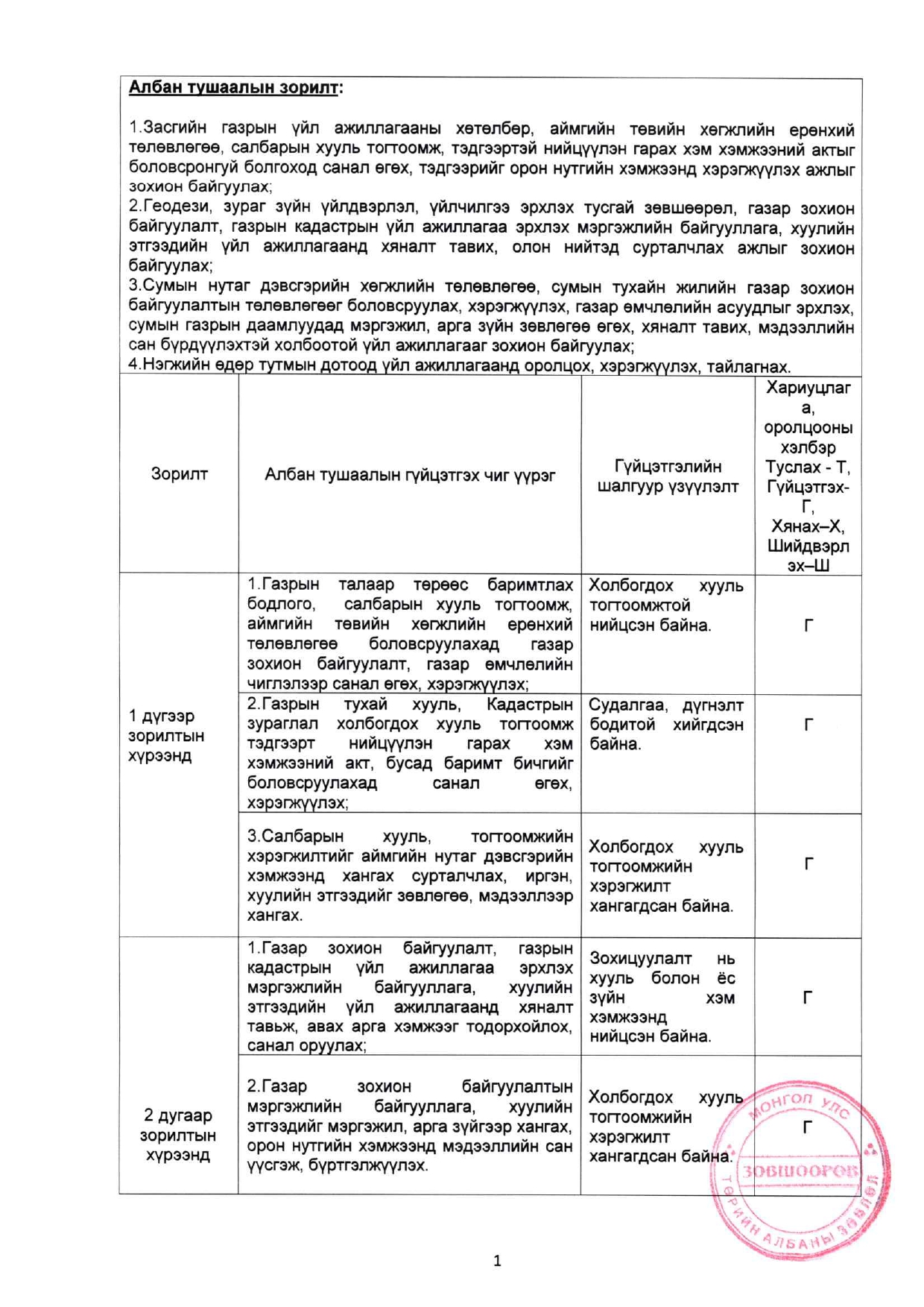 ЗАСГИЙН ГАЗРЫН ТОГТООЛ