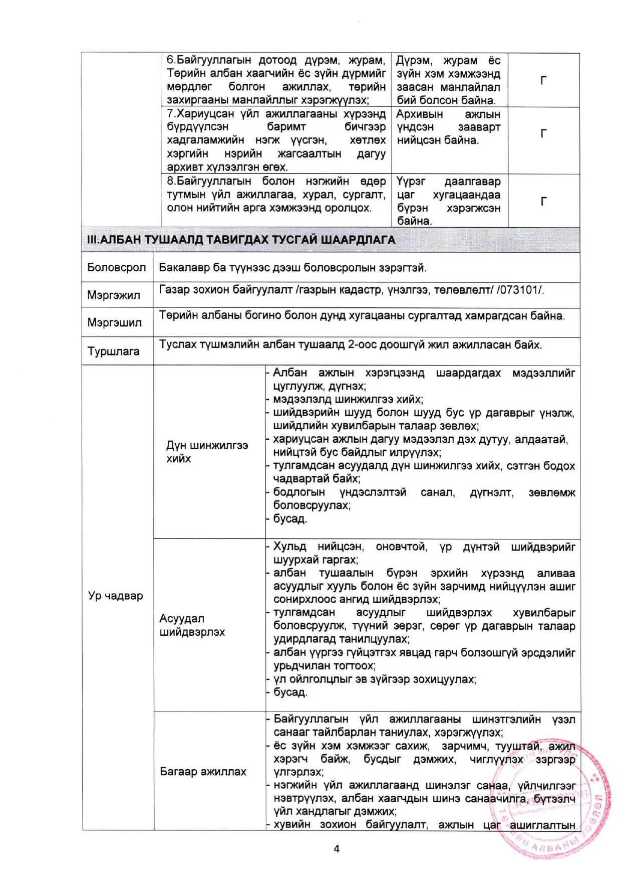 CАЛБАРЫН ТУСГАЙ ЗӨВШӨӨРӨЛ, МЭРГЭЖЛИЙН БАЙГУУЛЛАГЫН ЭРХ ОЛГОХ СИСТЕМ