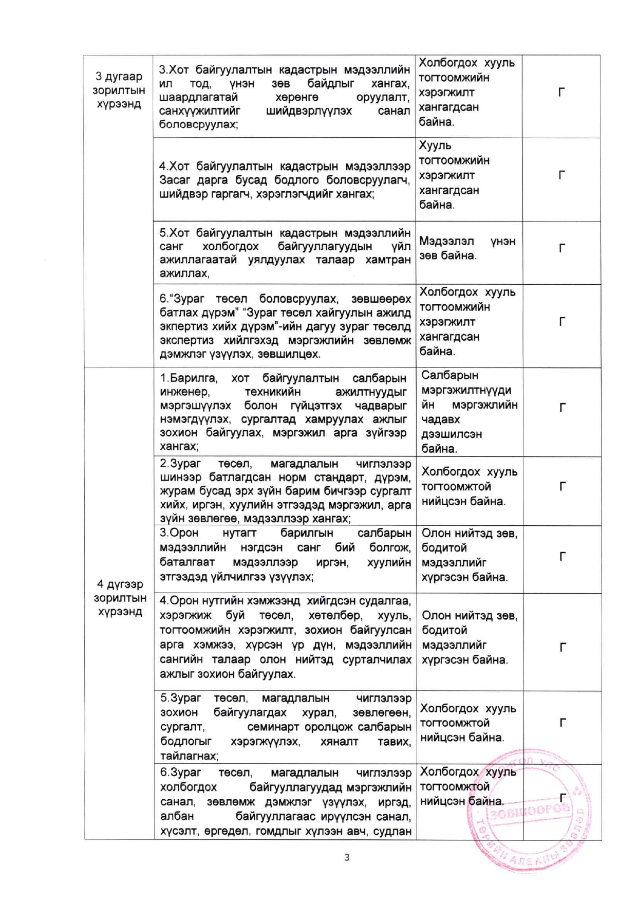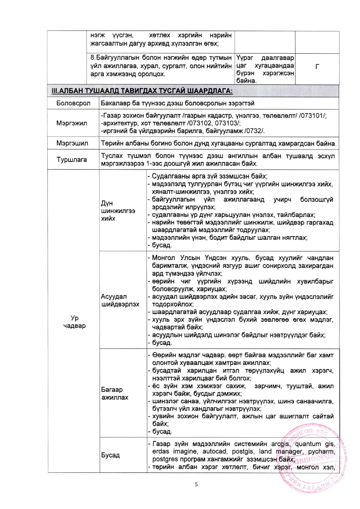 Хот байгуулалтын кадастр, зураг төсөл, магадлалын асуудал хариуцсан мэргэжилтэн