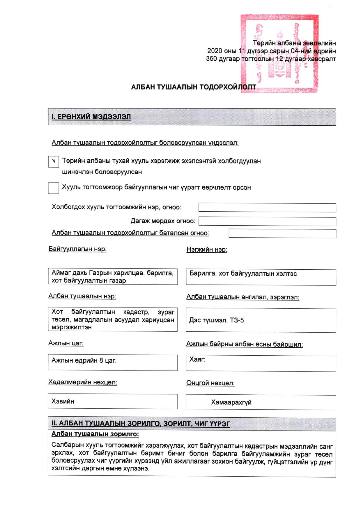 АЛБАН ТУШААЛЫН ТОДОРХОЙЛОЛТ