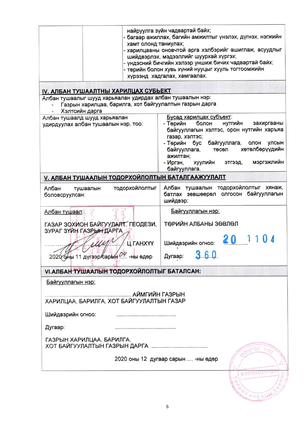 ГАЗРЫН ДАРГЫН ТУШААЛ
