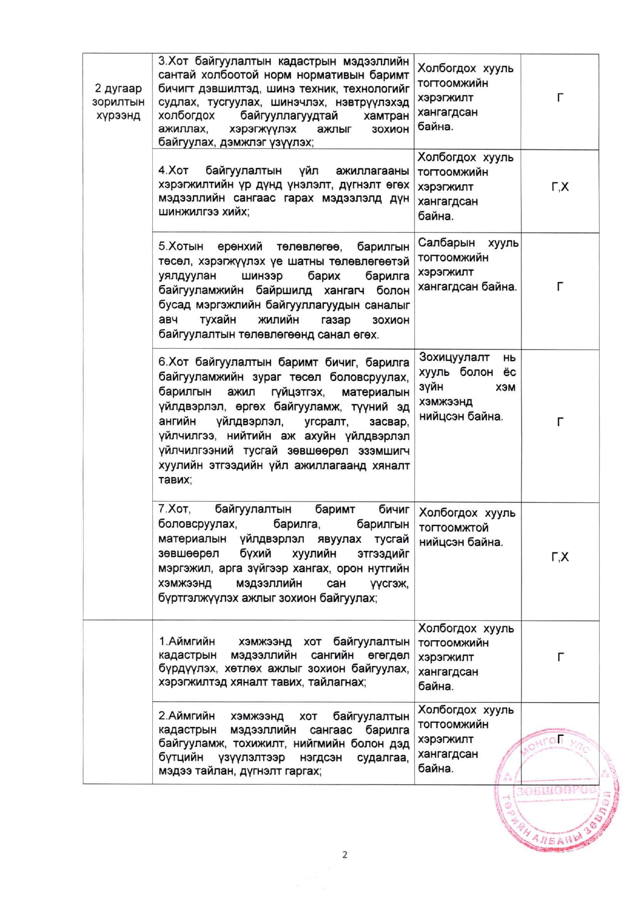 ГАЗАР ЗОХИОН БАЙГУУЛАЛТЫН ТӨЛӨВЛӨГӨӨ