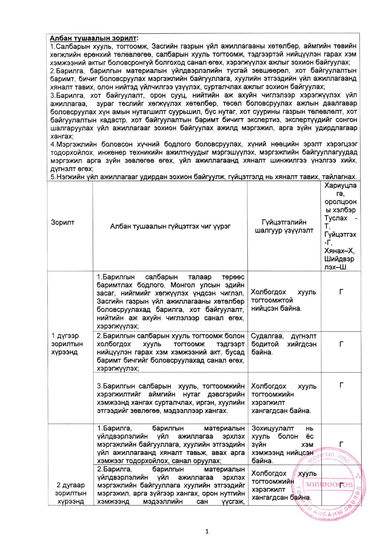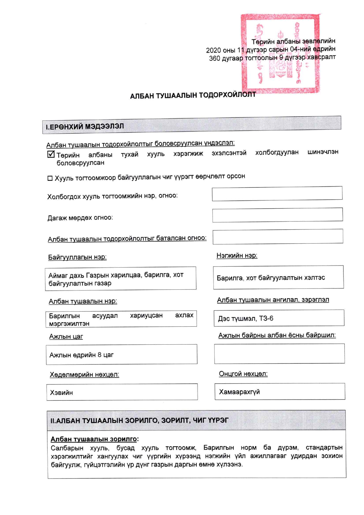 АЛБАН ТУШААЛЫН ТОДОРХОЙЛОЛТ