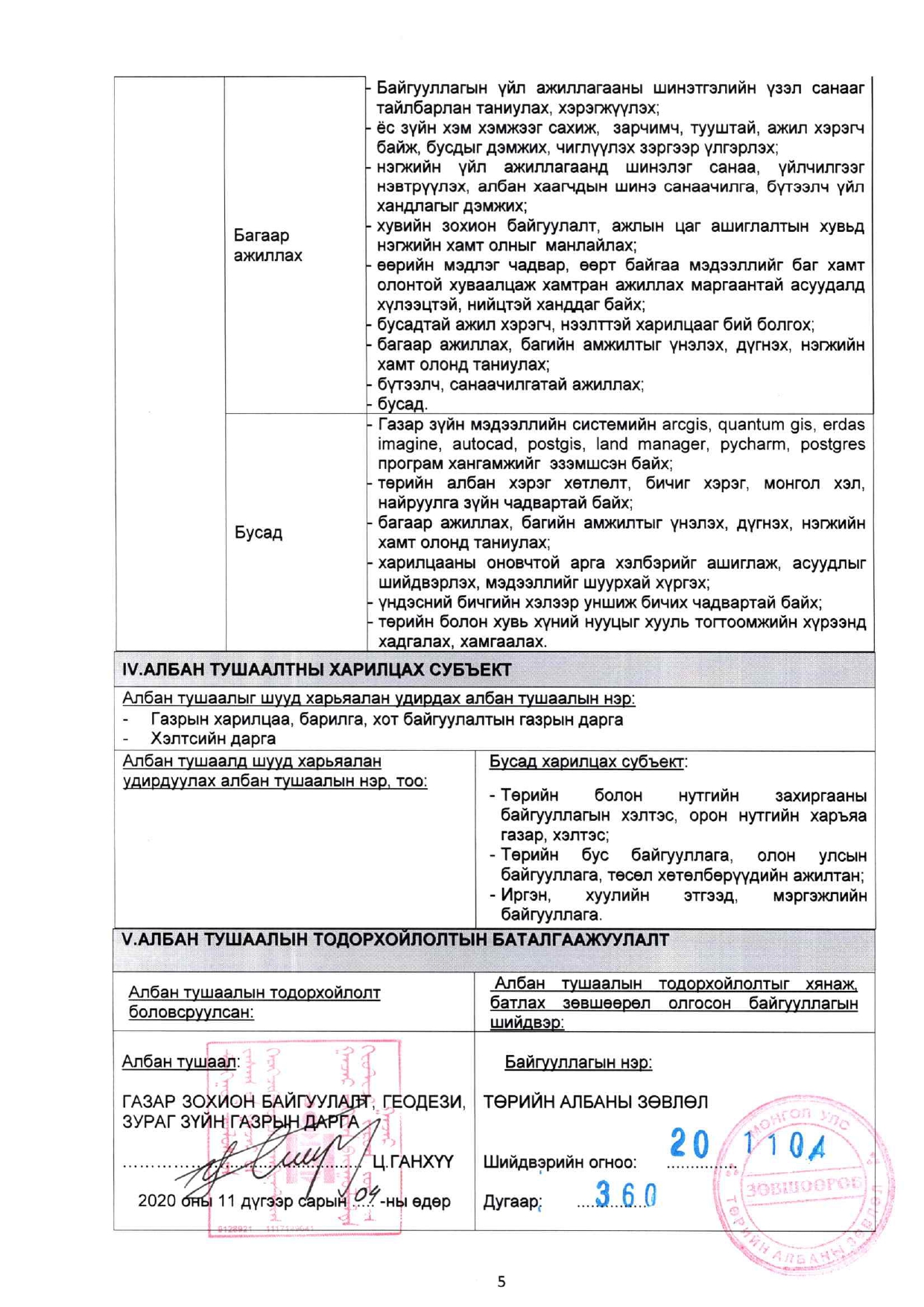 ГАЗРЫН ДАРГЫН ТУШААЛ