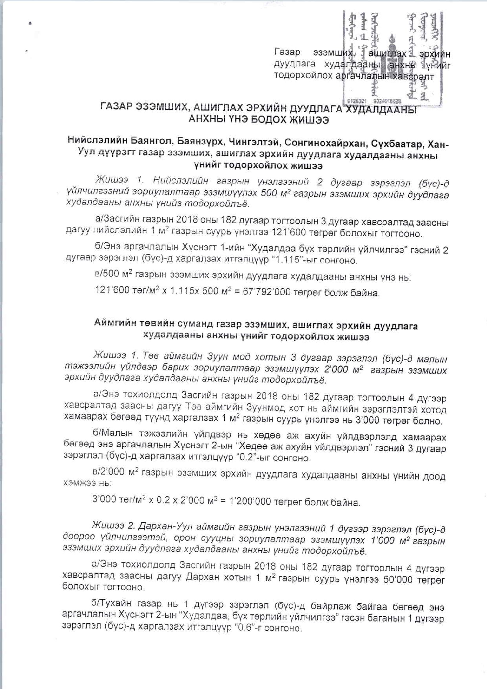 Газрын үнэлгээ, татвар төлбөрийн асуудал хариуцсан мэргэжилтэн : Т.Баатар